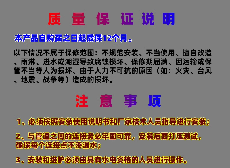 请选购规定功率范围内的循环增压泵,否则智能控制器损坏不在质保范围内。