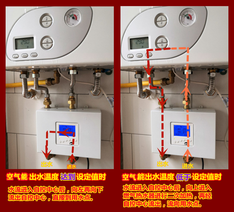 2. 自控中心右上口 → 燃气热水器冷水口